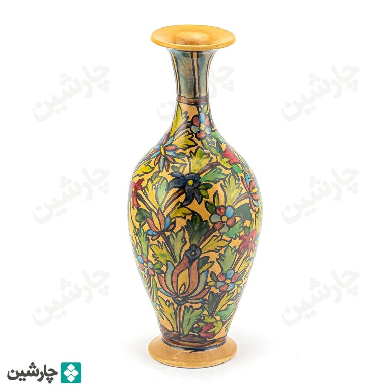 گلدان چند ضلعی لوله بلند پاستلی زرد